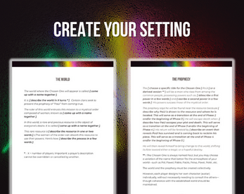 - Phase 1 – Introduction: Create the world and characters using fill-in-the-blank prompts.